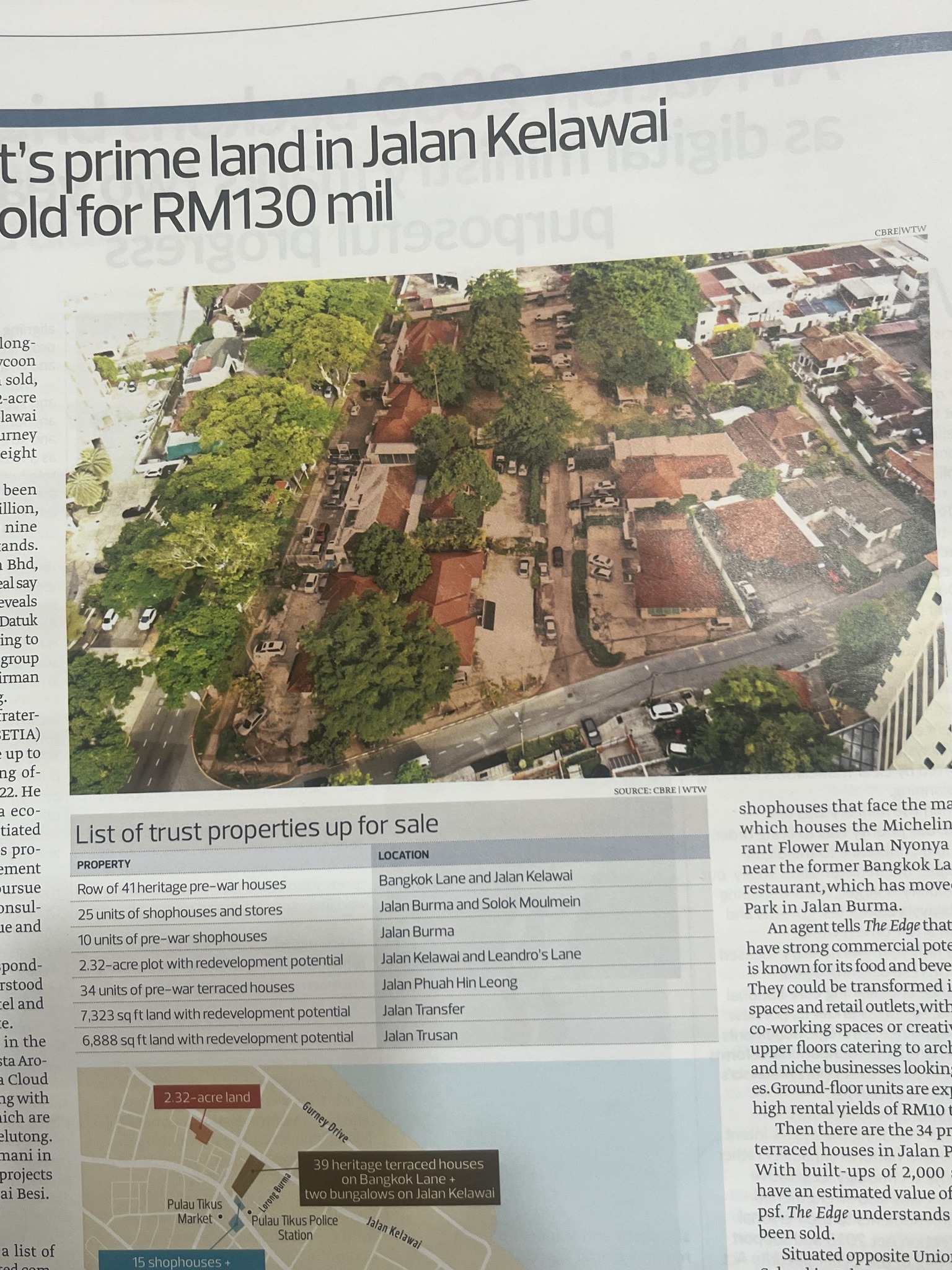 《THE EDGE》报导,槟城大亨谢龙启家族信托最近以拍卖形式,卖出槟城加拉歪路与廉德罗斯巷(JALAN KELAWI和LEANDRO LANE)之间一段2.32英亩土地。